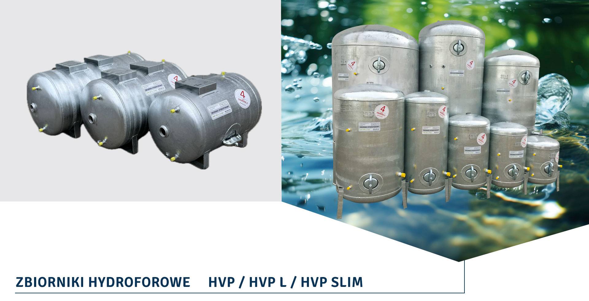 Zbiorniki hydroforowe typu HVP wykonane są z blachy stalowej niskowęglowej ocynkowanej ogniowo. Przeznaczone są do magazynowania wody do celów spożywczych lub przemysłowych, zasilania w wodę budynków mieszkalnych i gospodarczych z własnego ujęcia wody ( studnie ocembrowane, wiercone, głębinowe ), do systemów nawodnieniowych ogrodów, domków letniskowych.